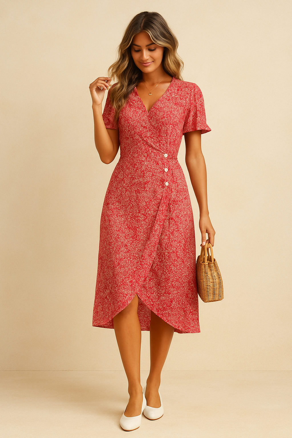 Camille – Bloemen Wrap Dress met Knoopdetail